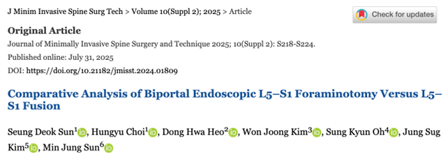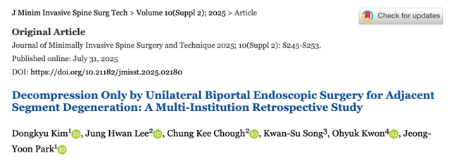 JMISST Deputy Editor’s Pick :Biportal Name : 대한최소침습척추학회 Date : 2026-02-23 Hits : 15 Professor Bio Kim List