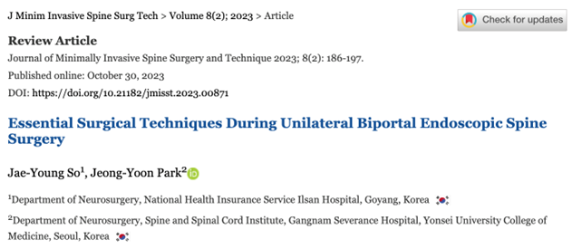 JMISST Deputy Editor’s Pick :MISS Name : 대한최소침습척추학회 Date : 2026-02-23 Hits : 16 Professor Jung-Woo HurEunpyeong St. Mary’s Hospital, Catholic University of Korea List