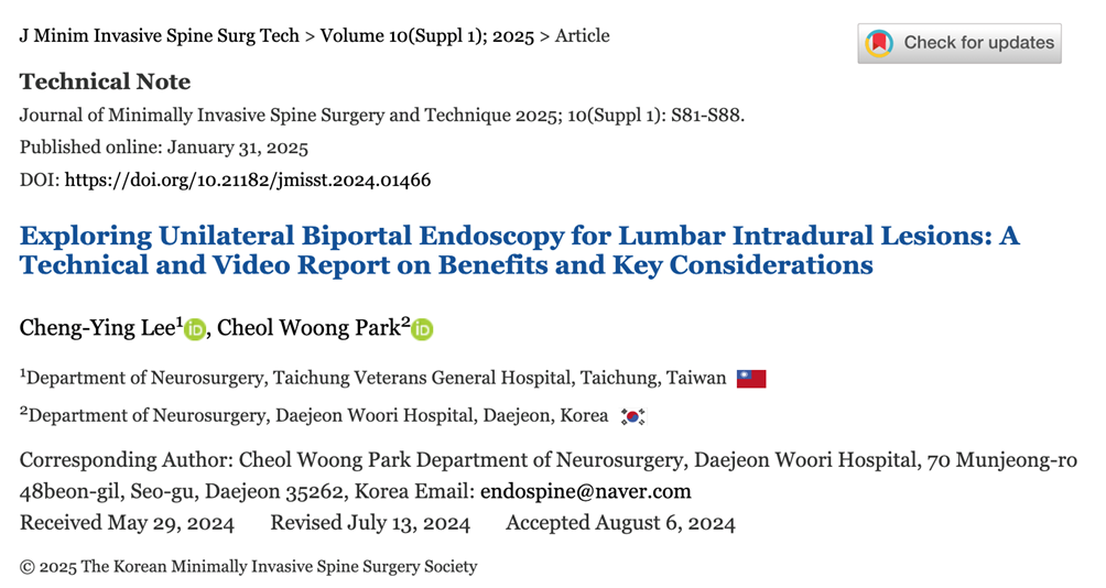 This study goes beyond a simple technical report; it represents an important turning point that demonstrates the feasibility and safety of intradural lesion surgery using spinal endoscopy, supported by actual clinical cases and concrete techniques. It is a highly valuable piece of research that may contribute to expanding the indications of endoscopic spine surgery and establishing new standard surgical methods.